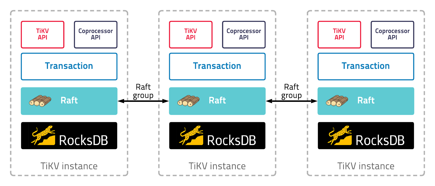 | Raw | 개별 Key-Value 쌍과 직접 상호 작용하기 위한 하위 레벨 Key-Value API. | 단일 키 | 응용 프로그램에는 분산 트랜잭션이나 MVCC(Multi-version Concurrency Control )가 필요하지 않습니다. |